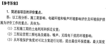环境影响评价师考试试题《环境影响评价案例分析》答案