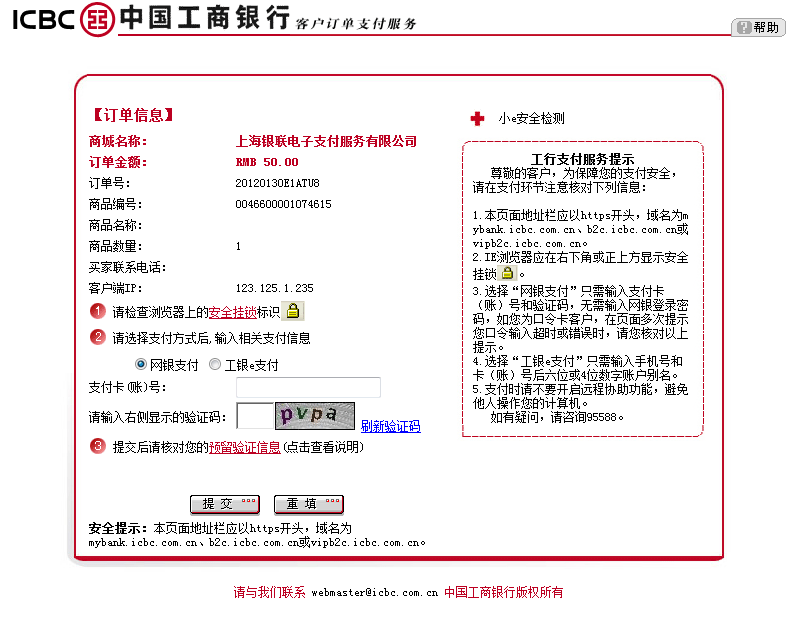 4、银行网银支付页面
