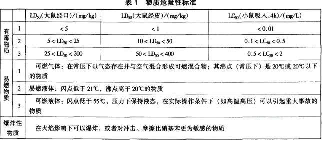 物质危险性判定标准见下表:
