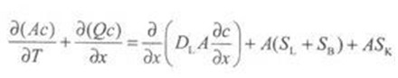 式中:A—河流横断面面积:Q—河流流量;c—水质组分浓度;DL—综合的纵向离散系数;SL—直接的点源或非点源强度:SB—上游区域进入的源强; SK—动力学转化率,正为源,负为汇。