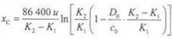 D=[K1c0/(K2-K1)]{exp[-K1x/(86400u)]-exp[-K2x/(86400u)]}+D0exp[-K2x/(86400u)] (6-8)