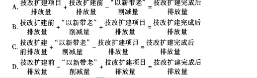 4、在统计污染物排放量的过程中,对于技改扩建项目,应算清新老污染源“三本账”,其相互关系表示正确的是( )。