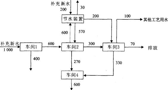 39、某企业给水系统示意图如下图所示(单位为m3/d),该厂的用水重复利用率是( )。